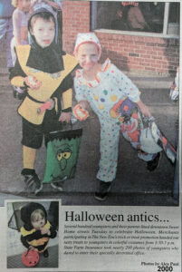 The New Era kicked off its first downtown trick or treat promotional event. Several hundred youngsters in colorful costumes solicited downtown businesses for treats, and merchants entered the costume contest. Winners were: State Farm Insurance, first place; John L. Scott Realty, second place; Linn-Co Federal Credit Union, honorable mention.