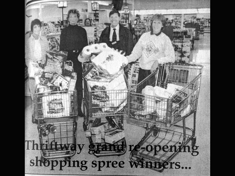Nearly $400 in Western Family products were given away during the grand re-opening of Thriftway. Lucky winners Nadine Baker and Maxine Stotlfus won three-minute shopping sprees.