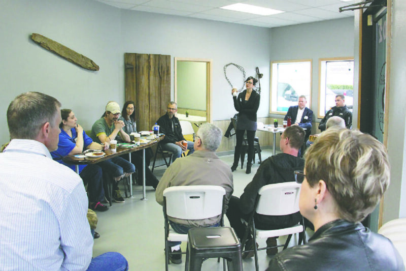 The turnout of nearly 30 packed the dining area of the shop as Venture Catalyst Caroline Cummings explained the resources offered by RAIN, which stands for Regional Accelerator and Innovation Network.