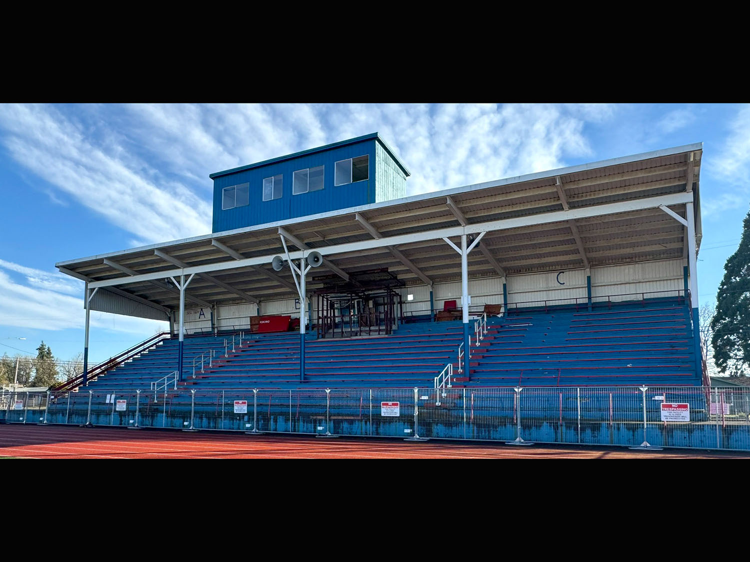 Based on a recommendation from school district officials and legal counsel, the district’s board of directors closed the stadium’s seating area in spring 2025. Graduation took place on the football field.