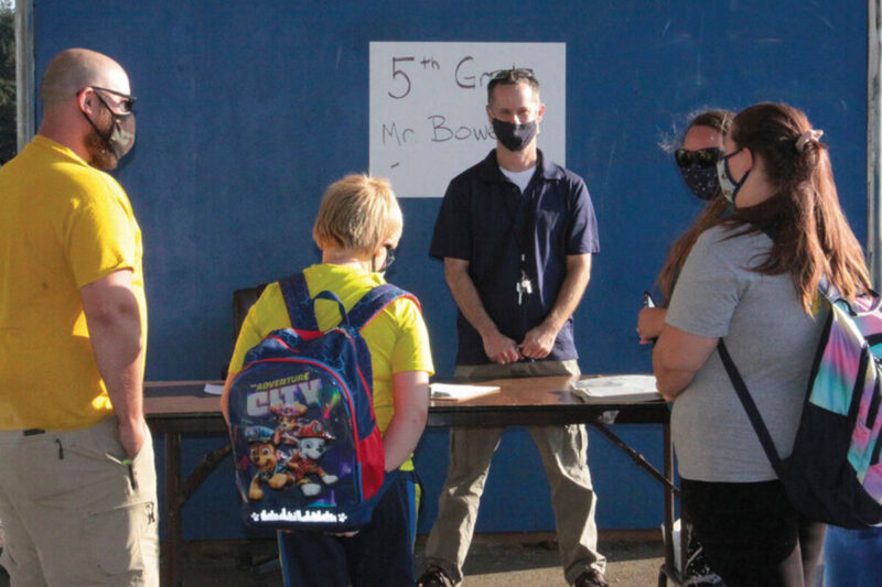 In the first photo, Holley fifth-grade teacher Brett Bowers talks with students at the school’s open house Thursday, Sept. 2. In the second photo, Cera Hartness, PTC president, dishes up ice cream while Joanna Reisbick, in the third photo, chats with visitors in her first/second grade classroom.