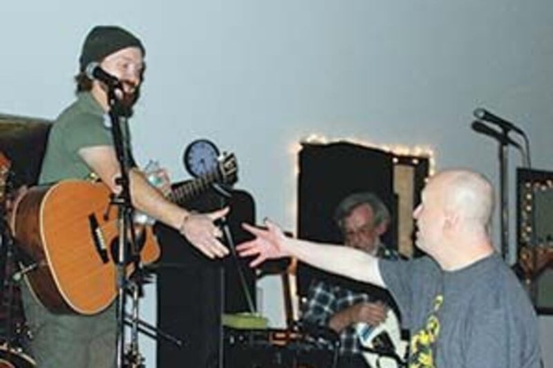 Robin Smith and Tayden Masters dance to tunes provided by Americana-country artist Melody Guy at a Sunshine Industries fundraiser held Saturday night. At left, Jimmy Simkins shakes local Americana singer Jobe Woosley’s hand. The event raised $1,400 for Sunshine Industries. Mike and Mira Hall of the Point Restaurant donated 100 percent of the proceeds from drink sales. Next up, blues-country musician Thad Beckman will perform at 7 p.m. on Nov. 19. Call Sunshine Industries at (541) 367-2765 for tickets. More than 75 people attended the show.