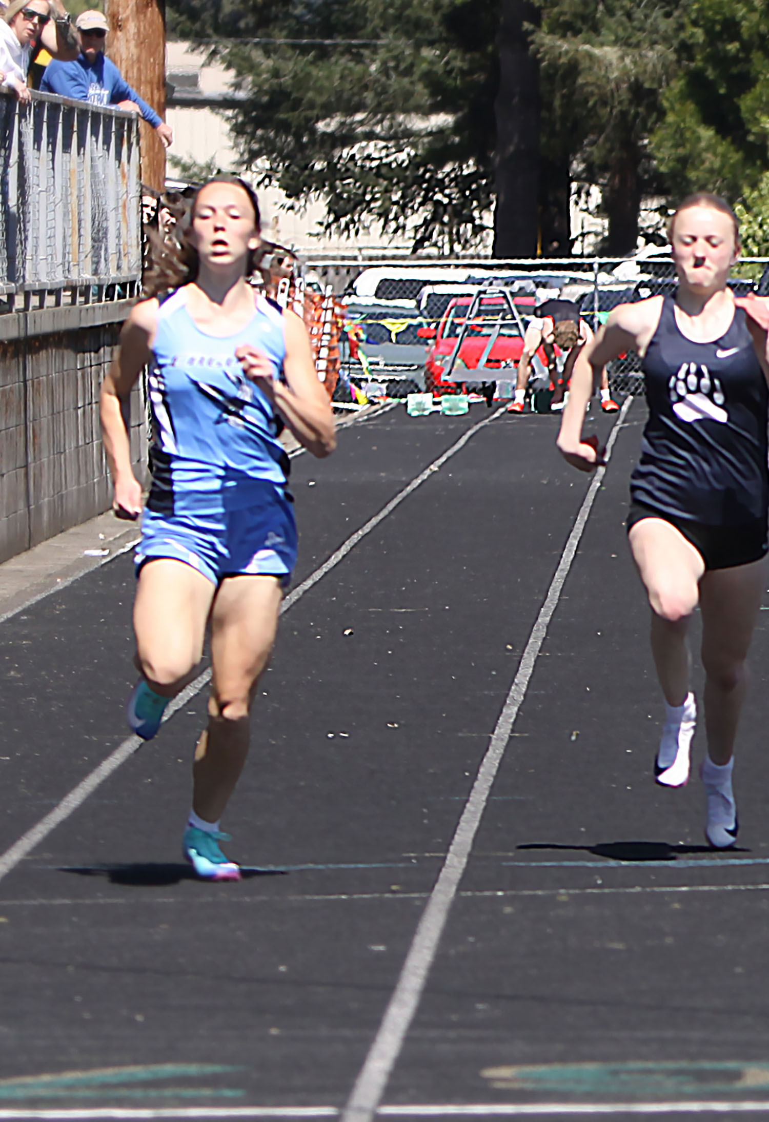 100 – (1) Selah Sanford (Sisters) 12.56; (2) Ava Greene (Elmira) 12.62; (3) Adrian Vogel (Tillamook) 12.75; (6) Lexy Kauffman (ELCA) 13.03; (19) Loralai Mark (SH) 13.57.