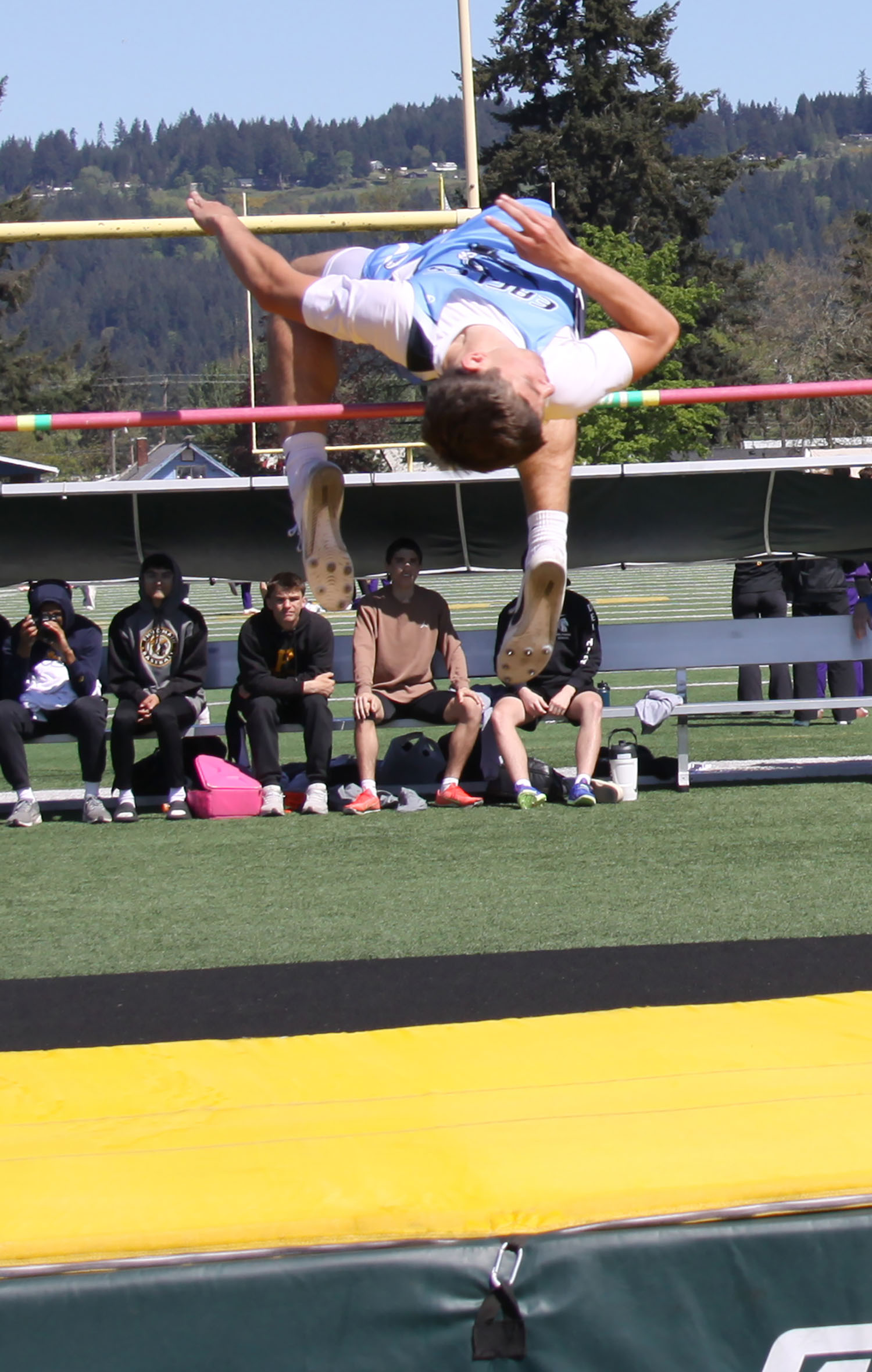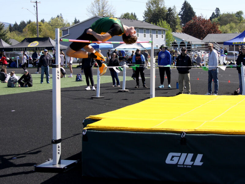 High Jump – (1) Ryder Howard (ELCA) 6-4; (2) Samuel Hernandez (Philomath) 6-4; (3) Adam Barnett (Blanchet) 6-0; (4) Dreyton Nuno (Philomath) 5-10; (6) Sam Barringer (SH) 5-8.