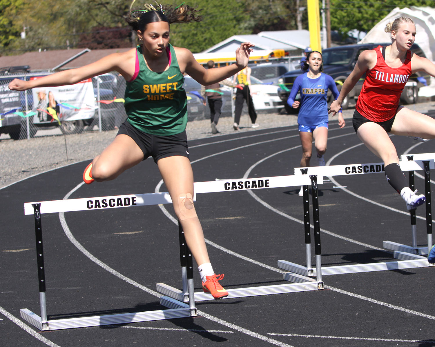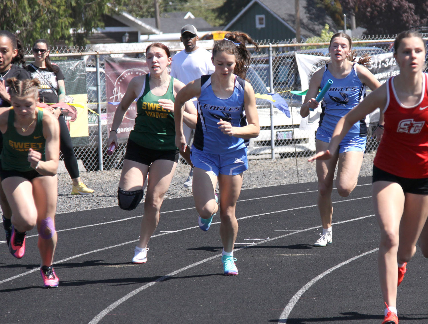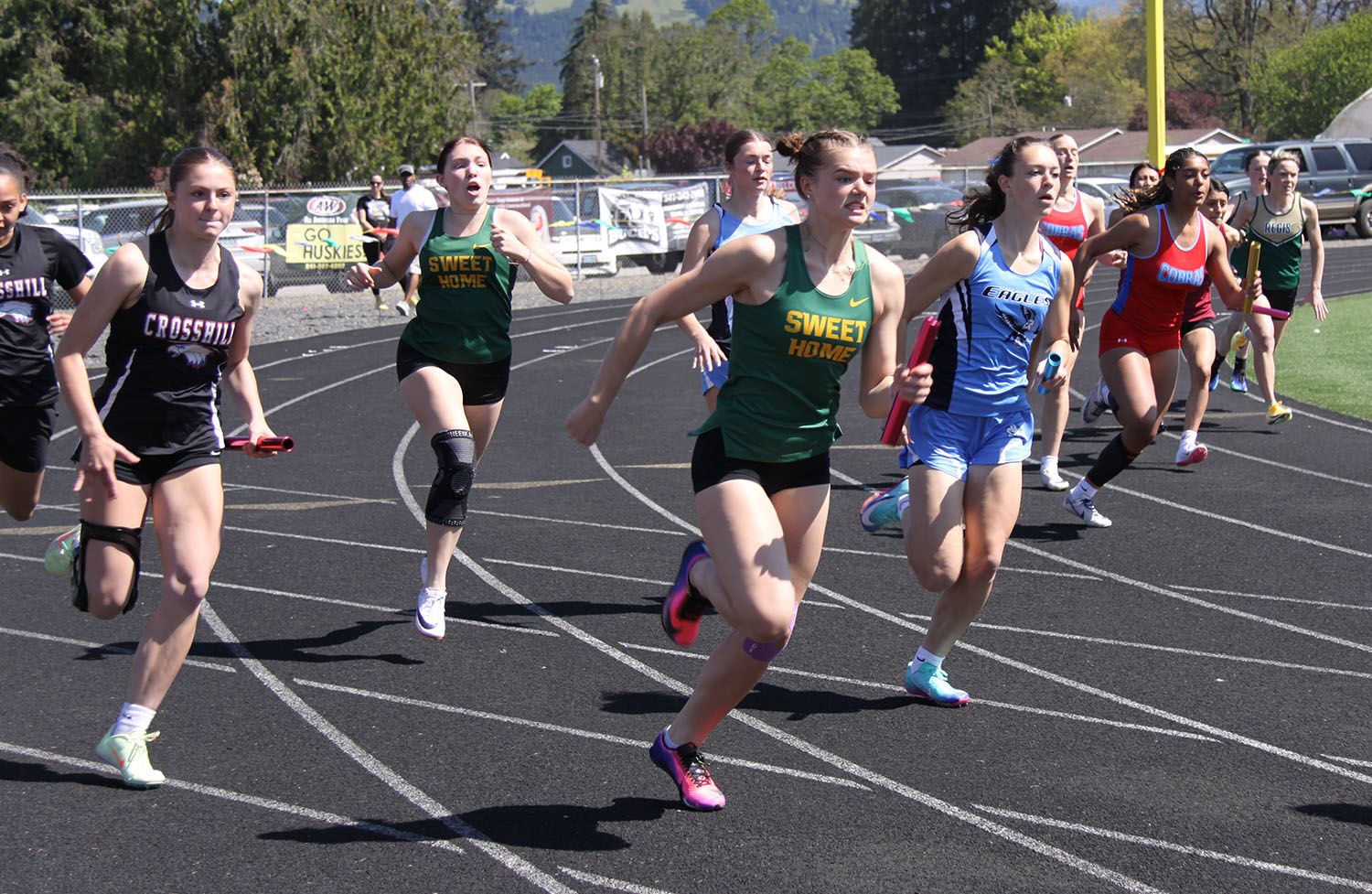 4×400 Relay – (1) Junction City 4:09.94; (2) Sisters 4:13.94; (3) Delphian 4:17.34; (4) Tillamook 4:19.41; (5) Philomath 4:22.97; (10) Sweet Home (Cassie Spencer, Emma Whitton. Noelle Helfrich, McKenzie Miller) 4:32.21.
