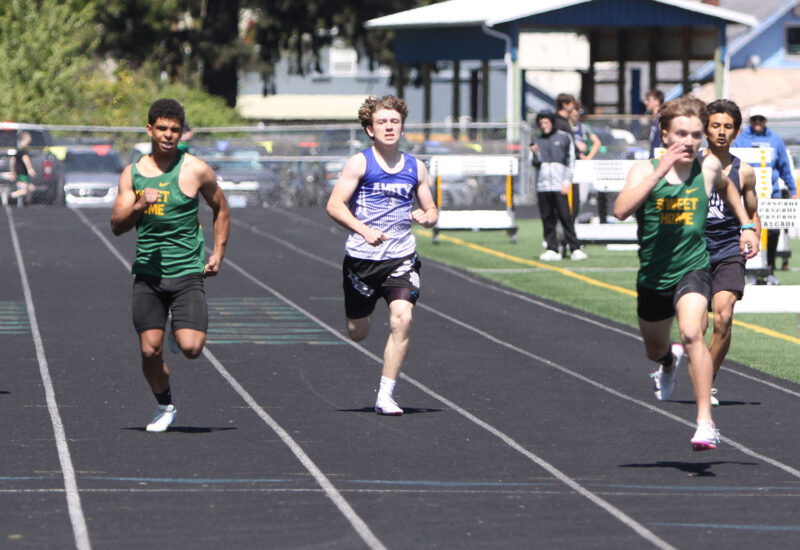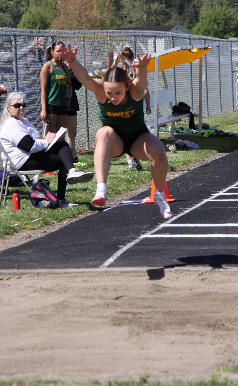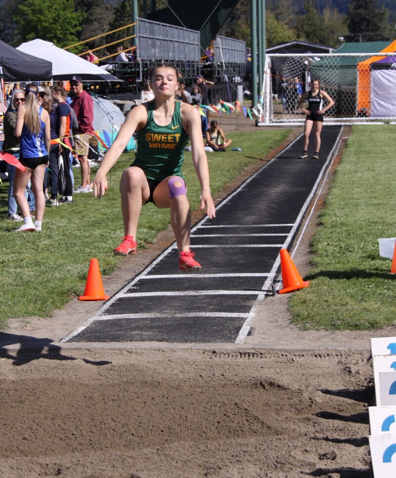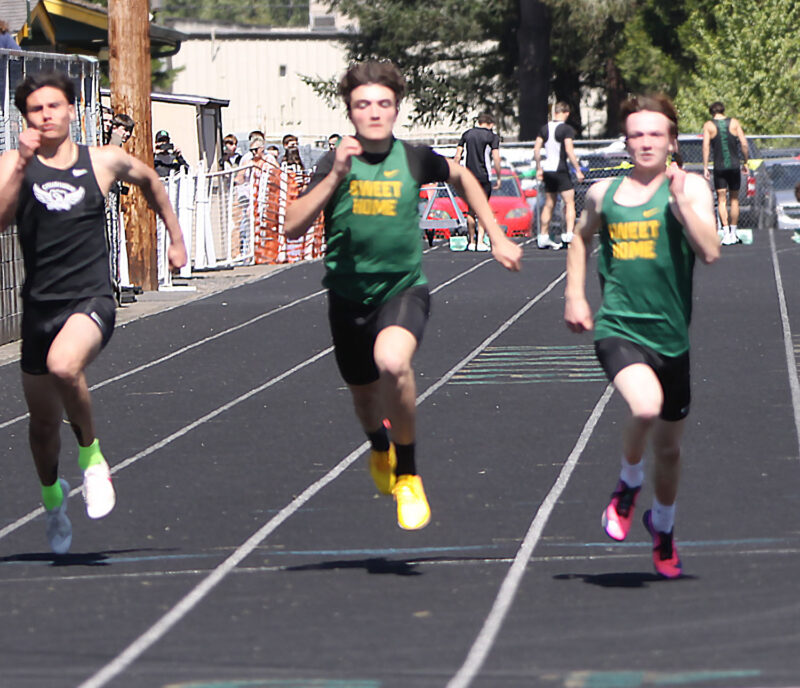 In a three-way meet with North Marion at Stayton on Wednesday, April 22, the Sweet Home boys finished on top with 104 points to 55 for Stayton and 13 for North Marion. The girls were also team winners, with 92 points, to 76 for Stayton and 5 for North Marion.