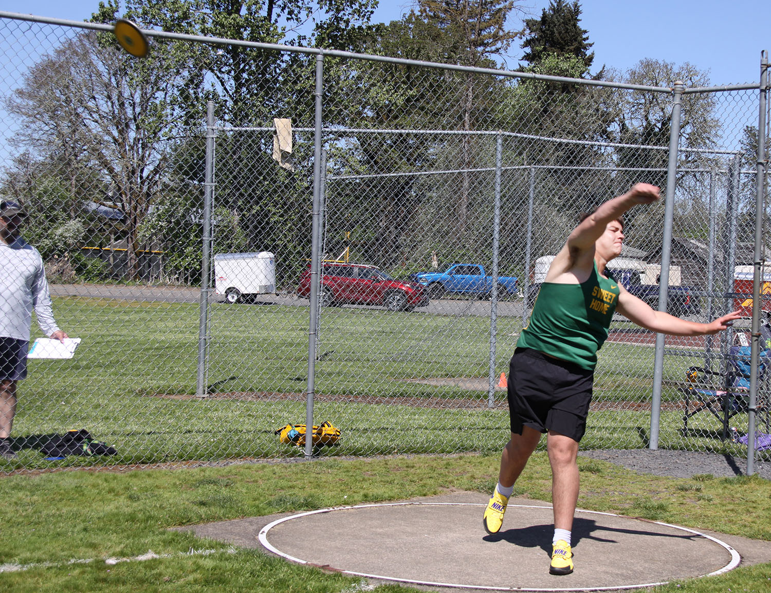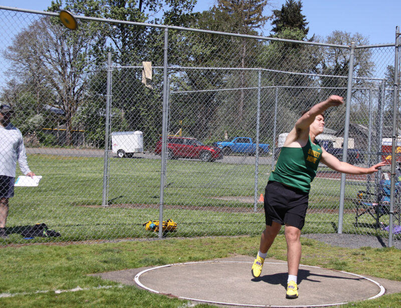 Discus – (1) Kaleb Moore (Junction City) 162-4; (2) James Barnett (Blanchet) 143-8; (3) Soren Johnson (Tillamook) 143-2; (15) Cannon Klumph (SH) 109-5.