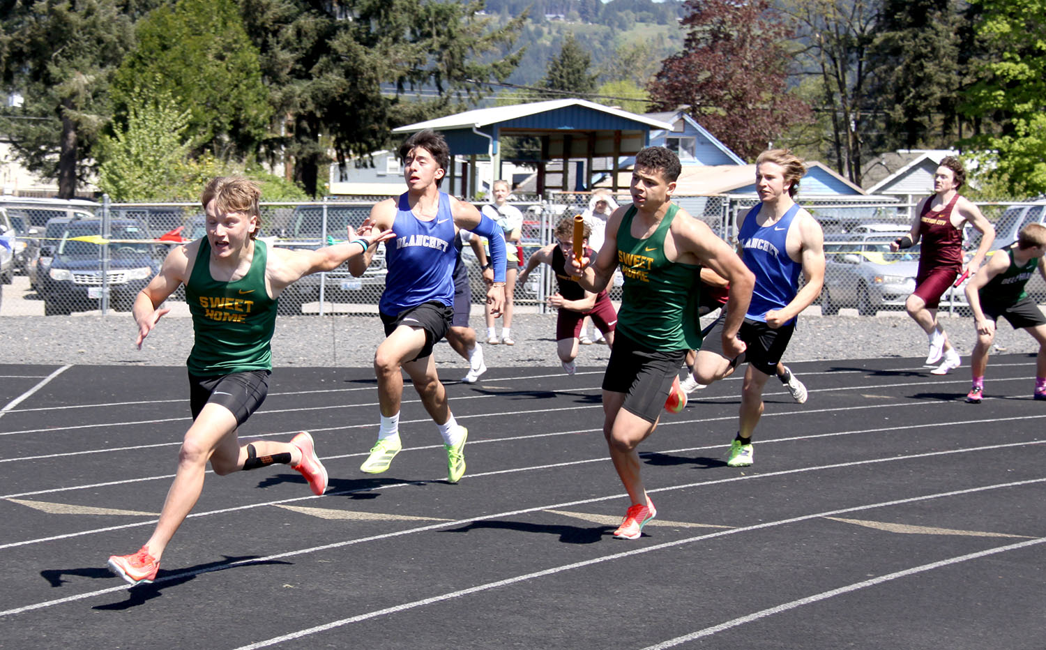 4×100 Relay (15 teams) – (1) Sweet Home (Landon Murry, Sam Barringer, Dillan Davis, Brayden Driver) 44.25; (2) Blanchet 44.38; (3) Salem Academy 45.27.