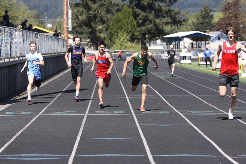 4×400 Relay (13 teams) – (1) Sweet Home (Brayden Driver, Ryker Burr, Landon Murry, Dillan Davis) 3:34.88; (2) Junction City 3:36.63; (3) Tillamook 3:37.37.