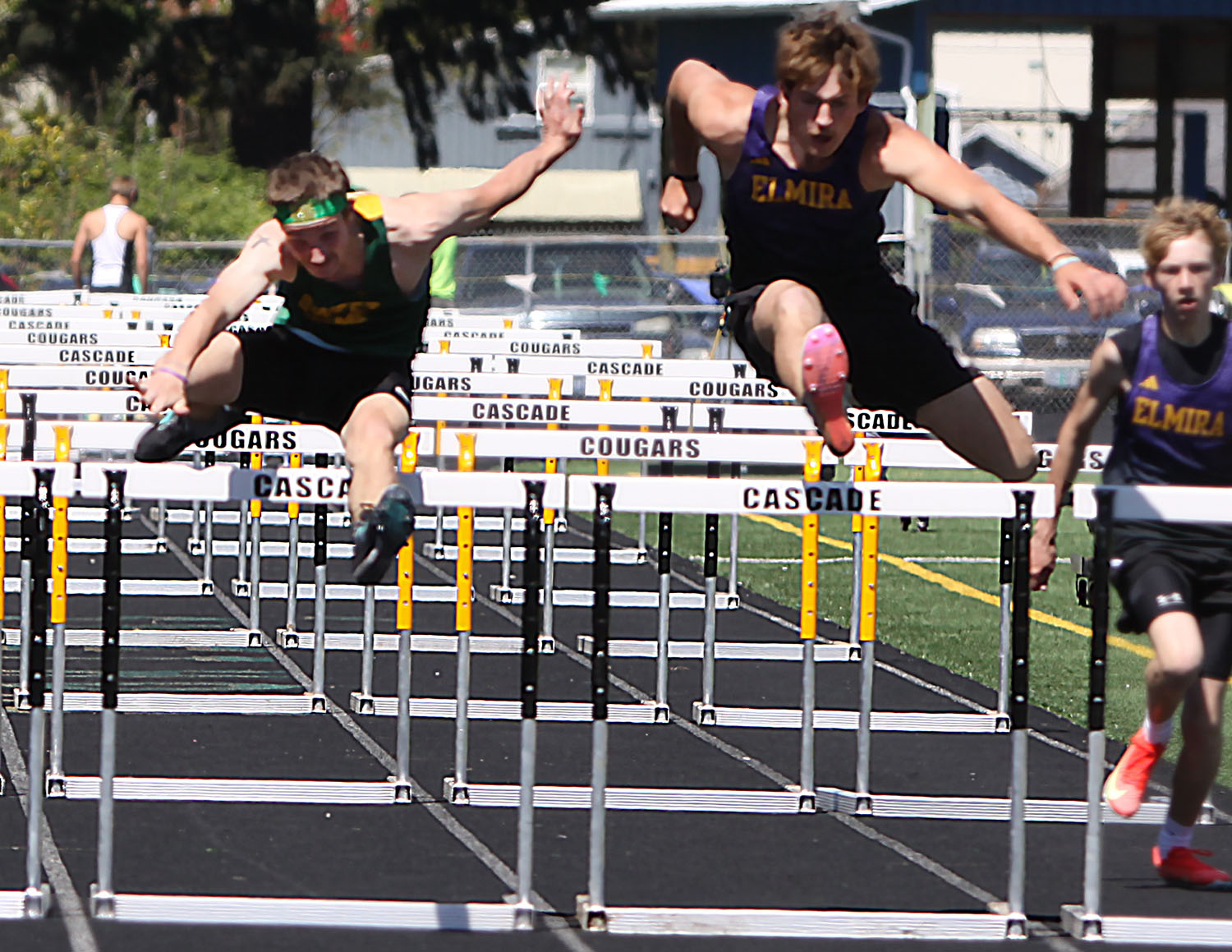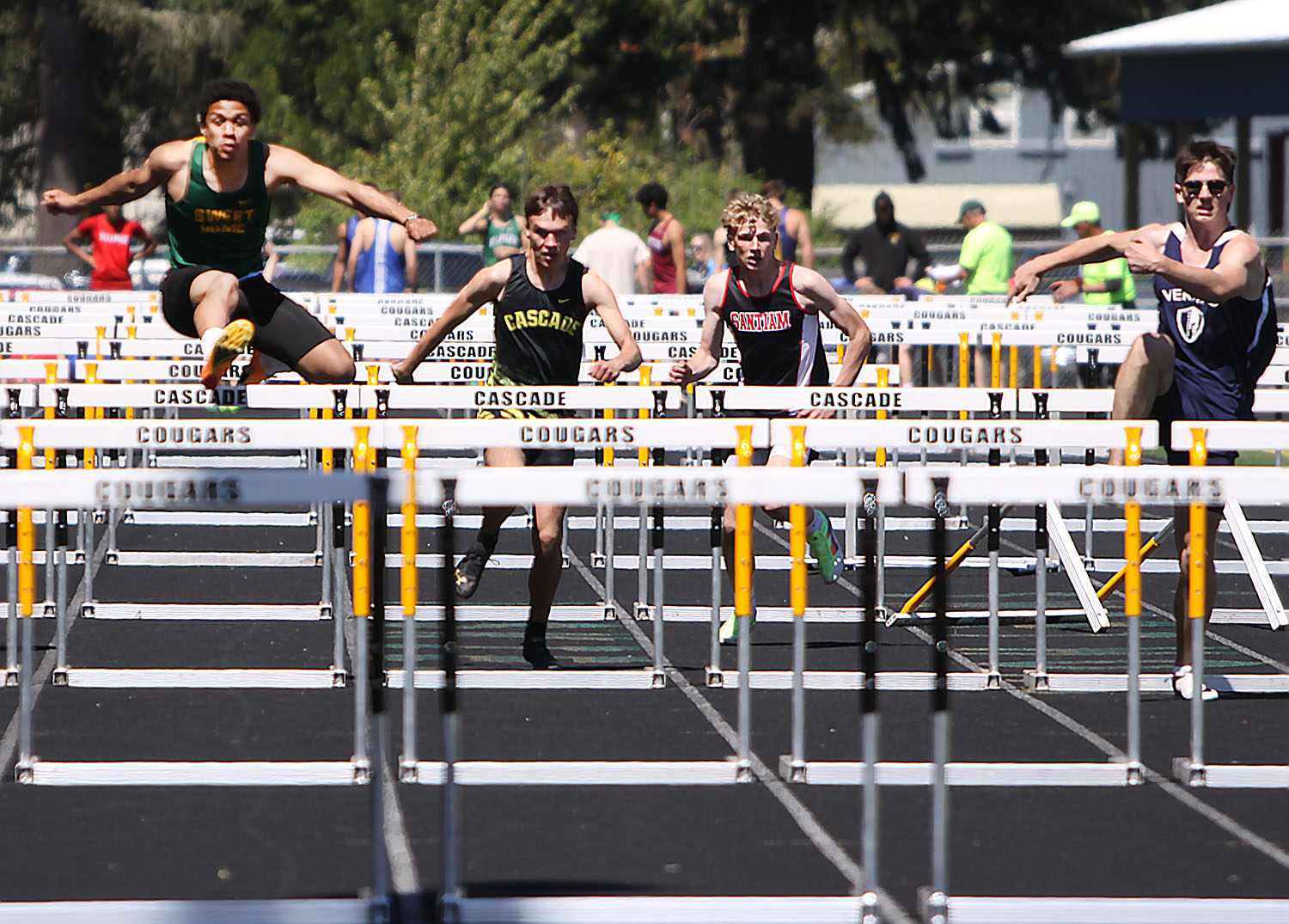 110 Hurdles – (1) Oli Beuaregard (Delphian) 14.82; (2) Tristen Adams (Triangle Lake) 15.32; (3) Deontae Washington (Blanchet) 15.33; (11) Nick Larson (SH) 17.20; (14) Kaeson Walker (SH) 17.42*.