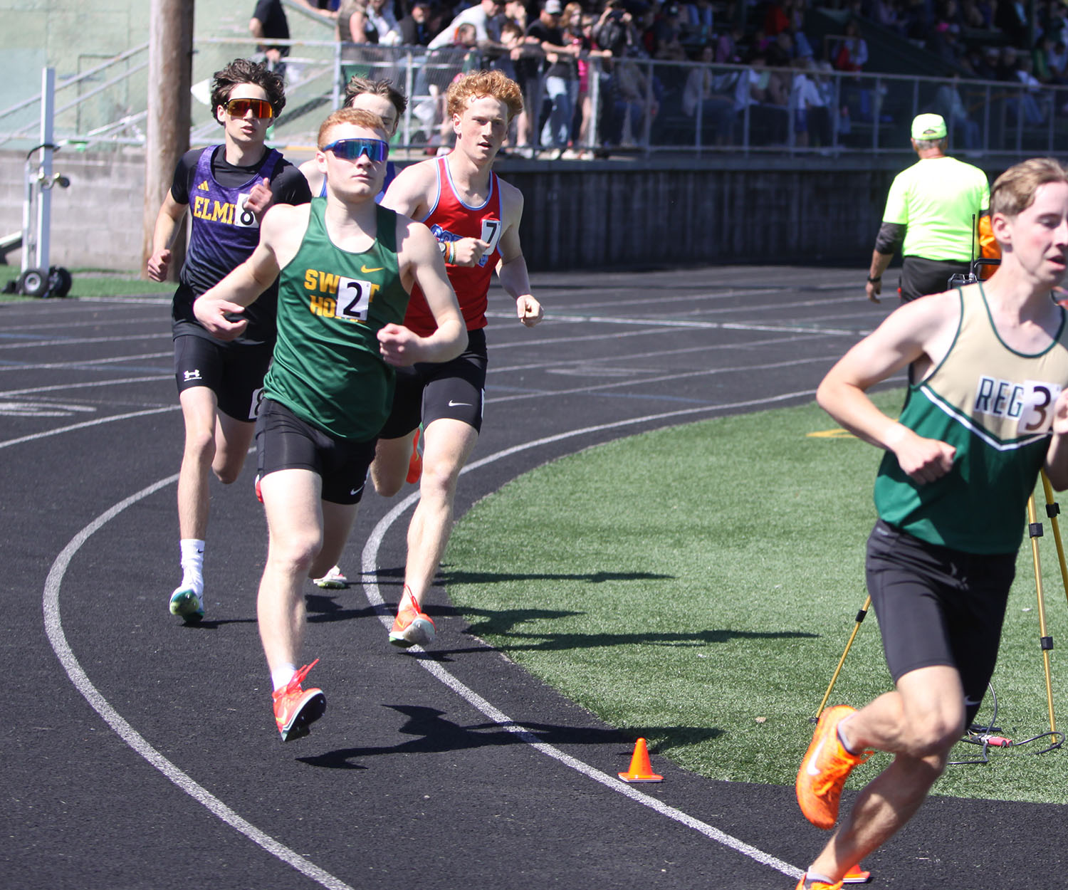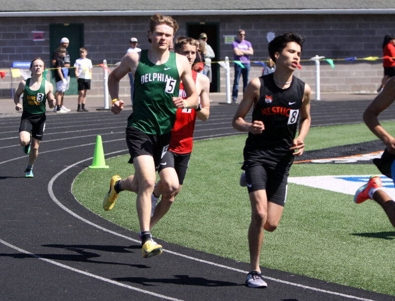 800 – (1) Gage Roper (Pleasant Hill) 2:00.08; (2) Micah Hanke (Cottage Grove) 2:00.25; (3) Nathan Cloutier (Delphian) 2:00.58; (17) Acen Webber (SH) 2:12.60*; (20) Ryker Burr (SH) 2:13.47; (22) Jonah Magness (ELCA) 2:16.59.