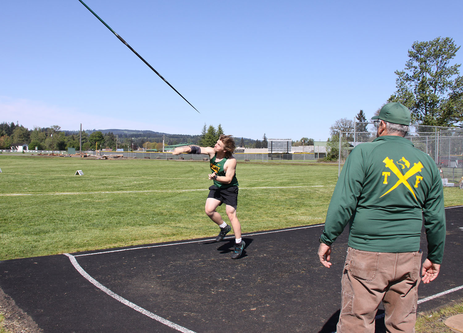 Javelin – (1) Josiah Peters (Philomath) 181-2; (2) Jordan Ness (Santiam Christian) 162-7; (3) Alejandro Magana (Dayton) 148-7; (13) Ean Tackett (SH) 133-3; (14) Gavin Tyler (SH) 132-7.