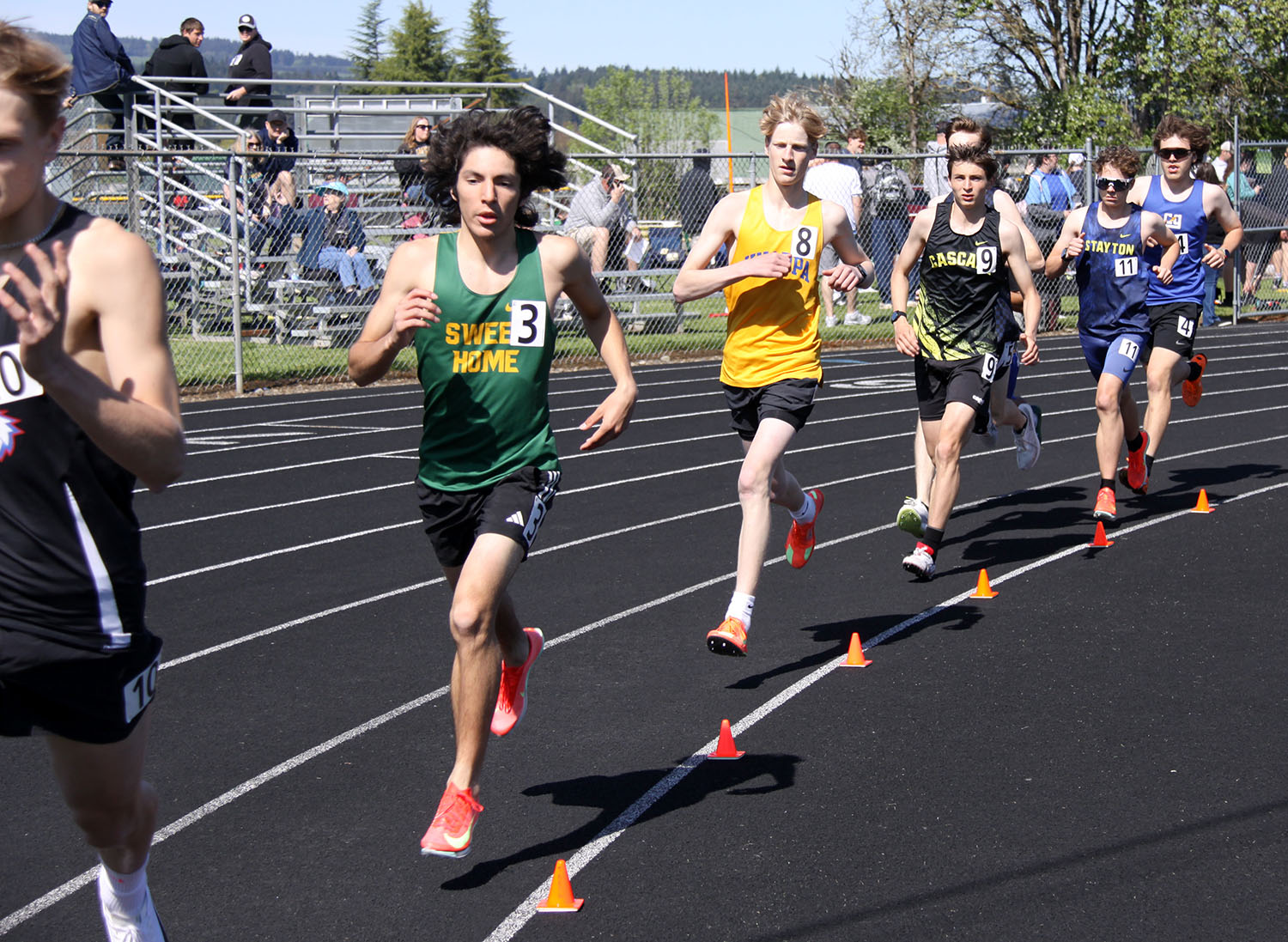 3000 – (1) Alejandro Abnai (Banks) 9:09.47; (2) Leo Pausch (Philomath) 9:13.98; (3) Wyatt Jacobson (Knappa) 9:30.82; (15) Elijah Rodriguez (SH) 9:54.55*.