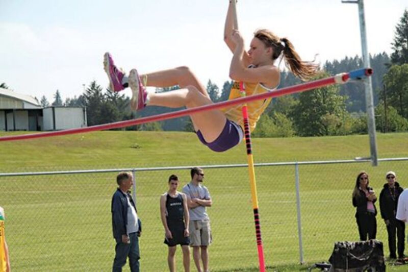 In the high jump, Ashton Stutzman is second in the HJ behind Jake McAlister of Sisters (6-3 to 6-1).