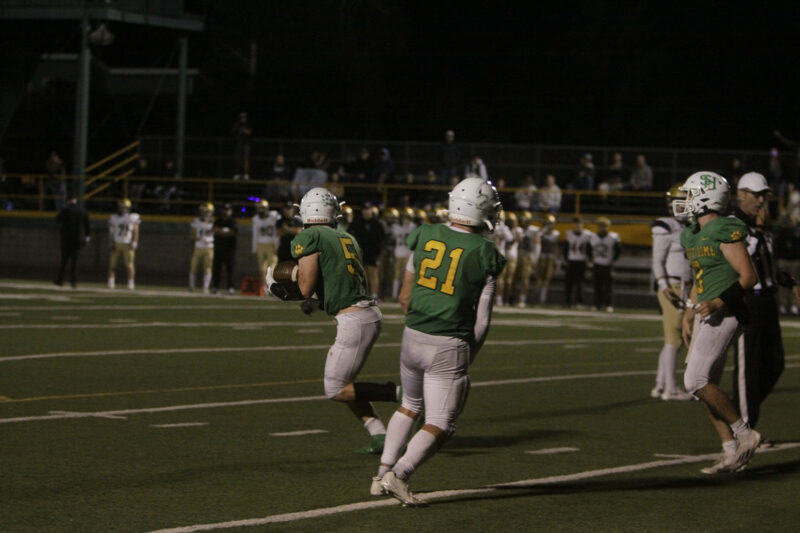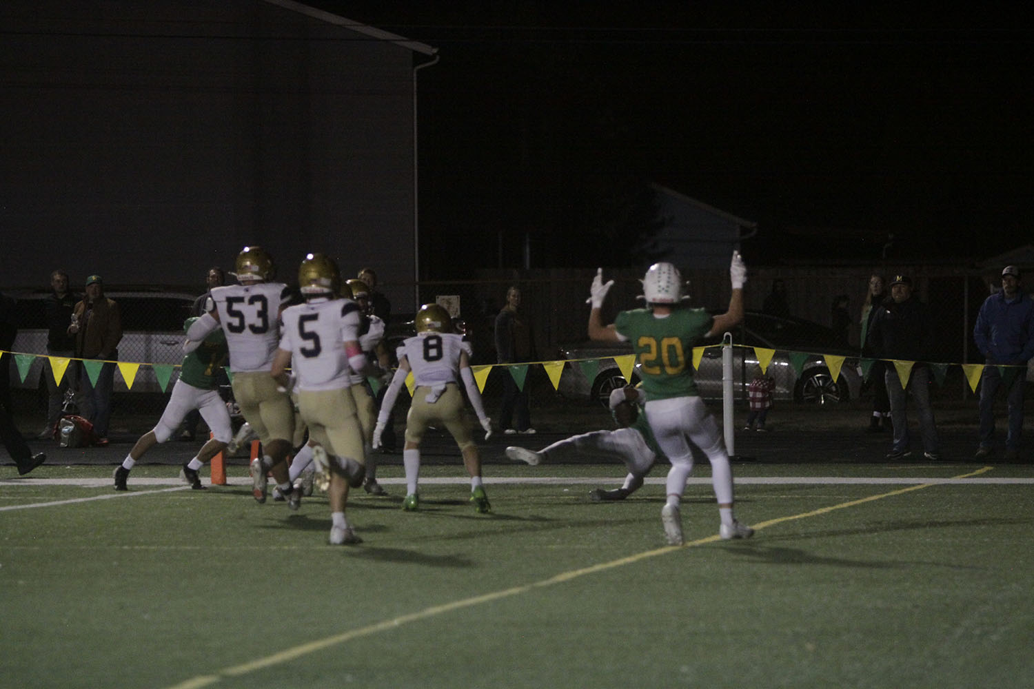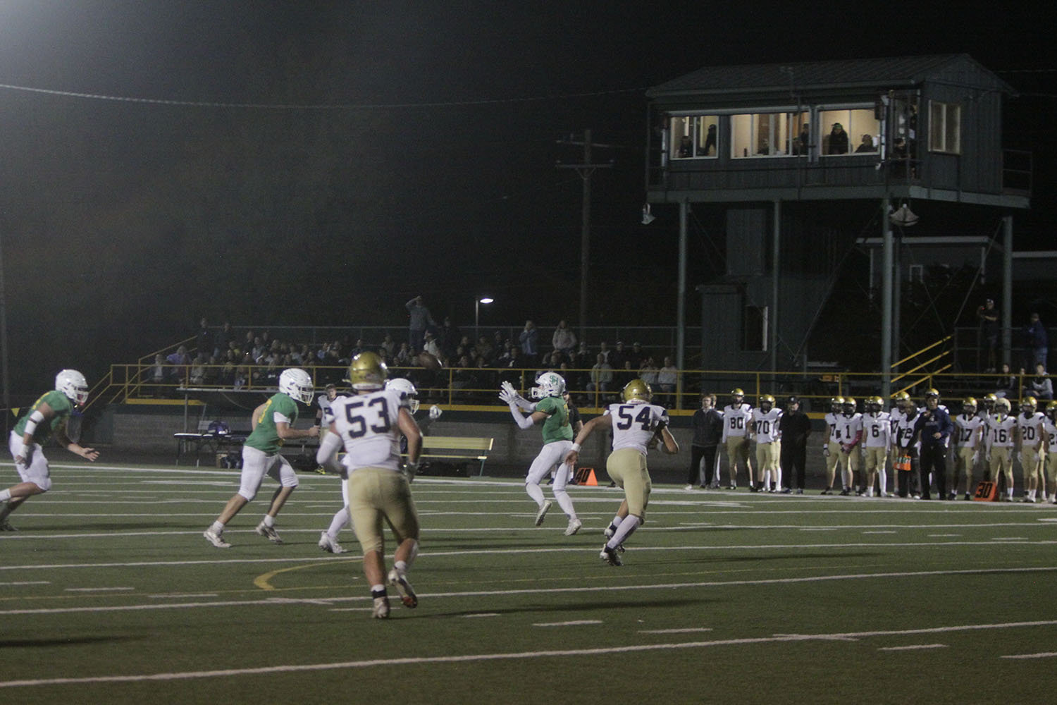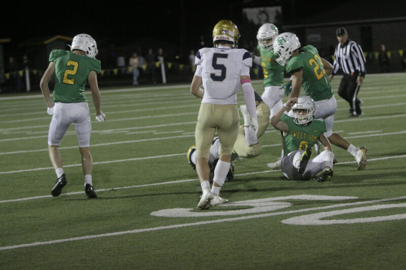 Then things changed for the Huskies as Kyle Zajic picked off a pass from quarterback Brody Gilliam, setting Sweet Home up at its 37 yard line.
