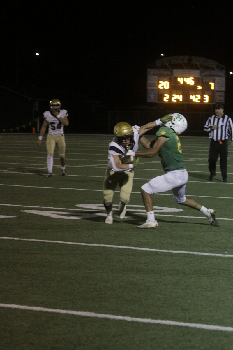 When Bode Nichols hit Marist ballcarrier Conner Harvey with a savage open-field tackle on the first play of the Spartans’ visit to Sweet Home Friday night, Oct. 3, the ball squirted out of Harvey’s hands.
