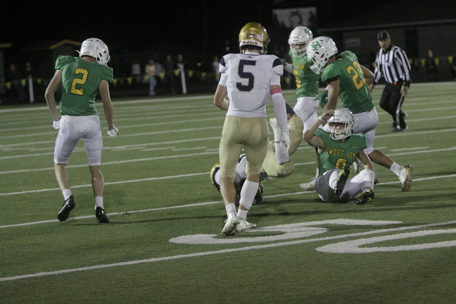 Zajic had his best passing game of the year, finishing with 181 yards on 12/21 with four touchdowns and no interceptions. Sweet Home had 84 yards on the ground, most of it from Barringer.