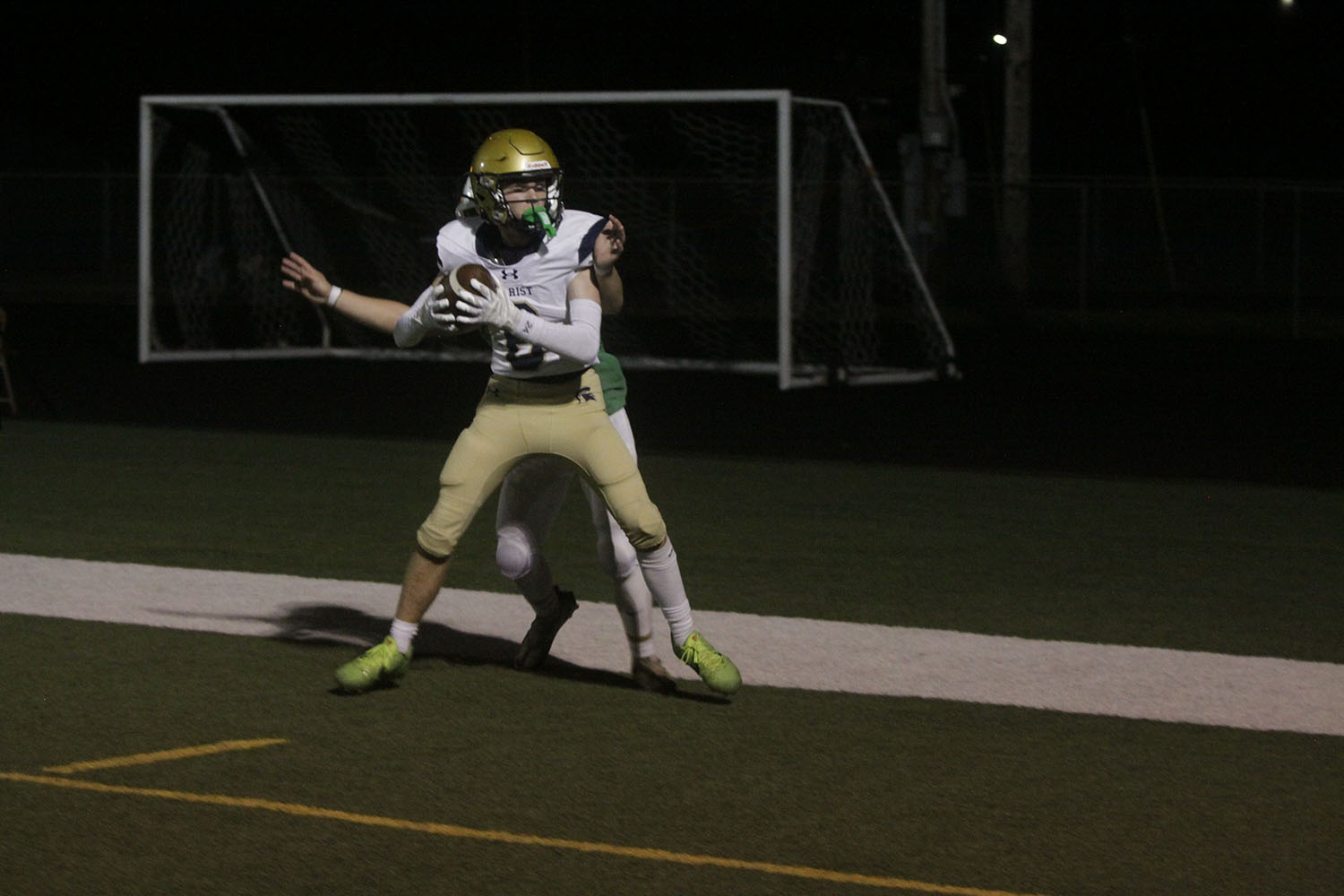 After forcing Marist to punt, they went to work again, moving 40 yards in 10 plays to the 28, where, on fourth-and-four, Zajic hit Nichols for his second touchdown pass of the night and a 14-7 lead with Gittins’ kick.