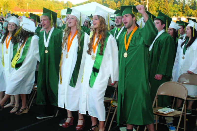 In addition to the 150 diplomas handed out by School Board members Jason Redick and Dale Keene, a veteran’s diploma was presented to Tom Hyer, who served in the U.S. Navy from April 1942 to April 1946 and, consequently, did not graduate from Sweet Home Union High School with his class (see related story).