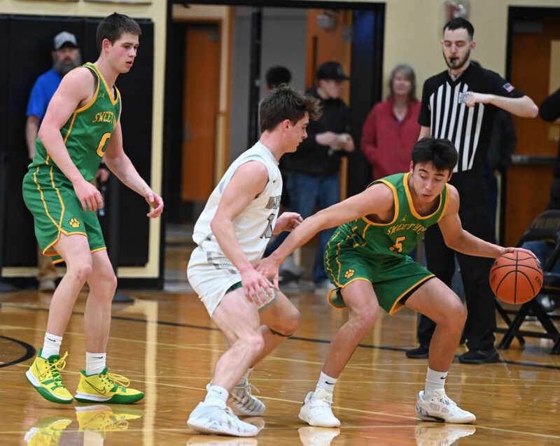 In the home loss to Stayton, Sweet Home stayed within reach down the stretch, despite adversity. Bradyn McClure fouled out with 4:30 remaining, forcing the Huskies to finish the game without their leading scorer.