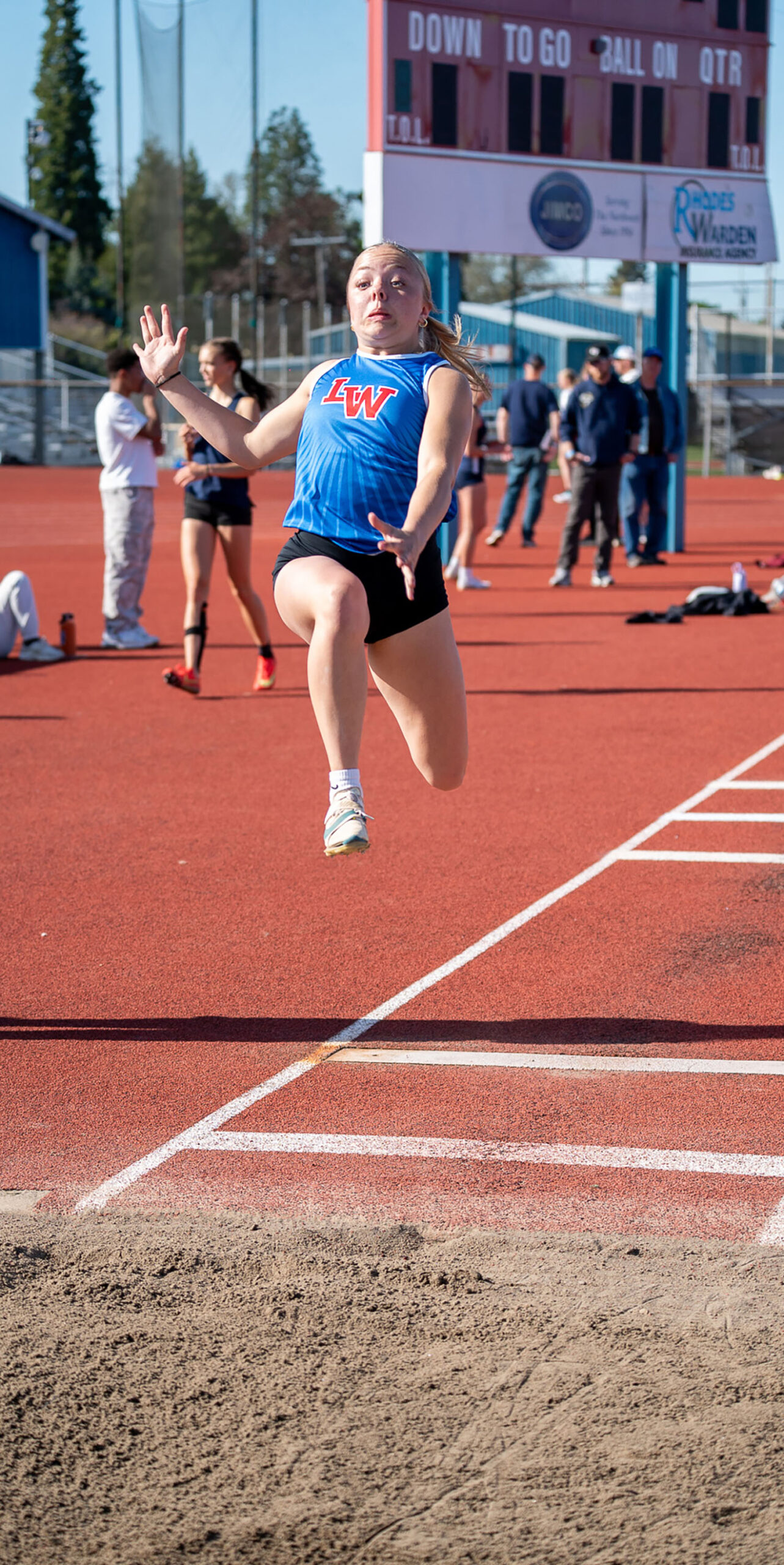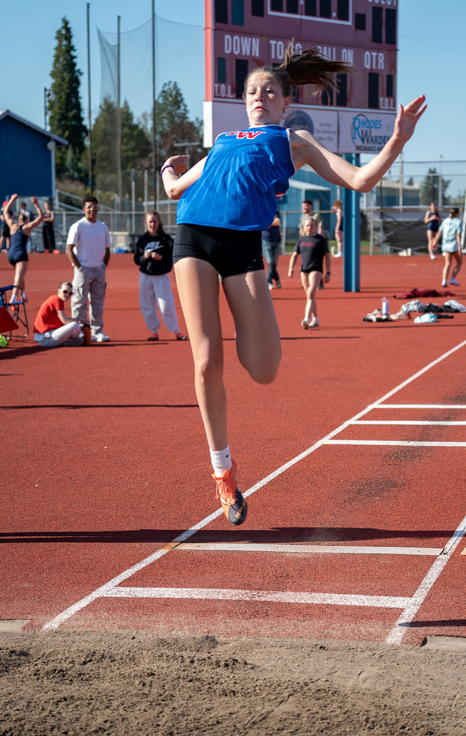 Long Jump – (1) Sydney Schreiber (La Pine) 17-6¼; (2) Ruby Vandenbos (L) 17-0¼*; (3) Addy Pickles (L) 16-10½; (6) Harper Pepperling (L) 15-11 (Note: Each team was allowed two scoring runners so Pepperling did not officially place);