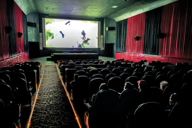 In the second photo, Ray Nomoto Robison of Medford, director of the winning film in the inaugural Reel Oregon, receives his award plaque from Rose Peda of SHOCASE, which organized the event. Robison’s film, “Dear Future Self,” tells the story of a woman who discovers a time capsule she created over 50 years earlier. Included is a recording she made for herself that brings back many memories of who she was and helps her realize who she has become. The festival, held at the Rio Theatre, shown in the first and third photos, included 13 films and drew about 75 people.