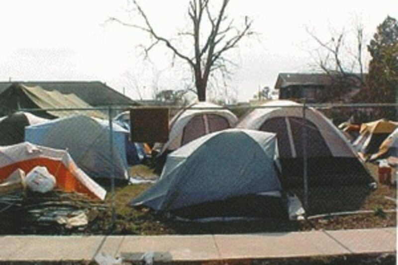 Driving through the ravaged areas, he has seen destroyed houses with stacks of debris out front and a FEMA trailer in the driveway, Clark said. In 40- to 60-degree weather, residents are living in tent cities.