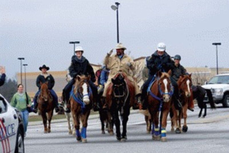 He left Lebanon on June 2 and arrived in Hendersonville, N.C., on Jan. 13. Hundreds of spectators welcomed him as he rode into town on his horse, Blackie, with about 20 other people on horseback accompanying him.