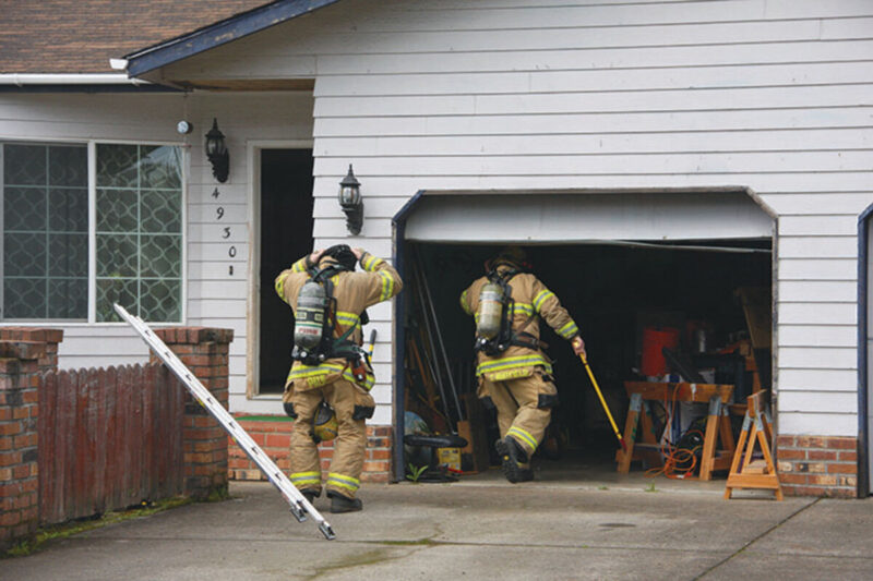 Occupants were alerted to the fire by a smoke detector, and attempted to extinguish the fire, keeping it at bay until responders arrived. Six personnel responded to the scene, with the ladder truck.