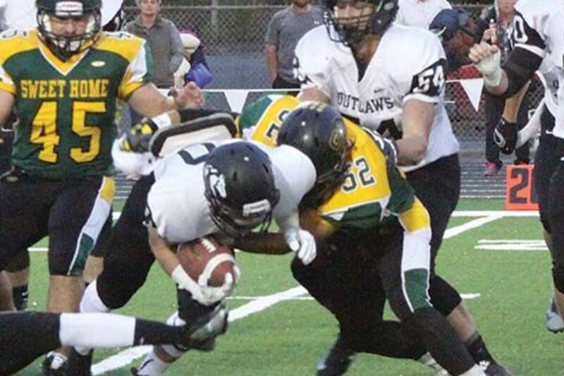 One problem Friday night was Sweet Home’s inability to stop the Outlaws’ ground game, particularly leading rusher Chance Halley, who finished with 23 carries for 156 yards and an interception that set Sisters up for his second score.