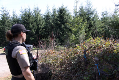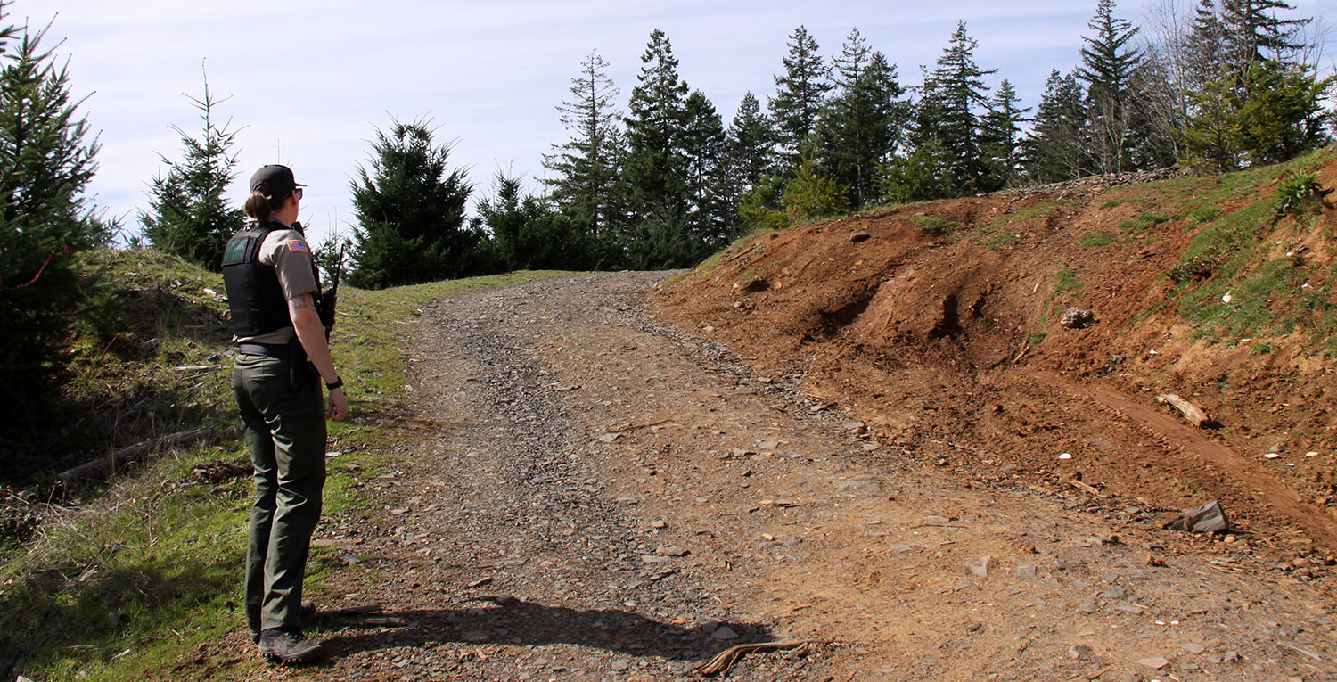 She polices the private forestlands in north and east Linn County, while other deputies focus on public lands, such as BLM properties, and the Corps of Engineers land around Foster and Green Peter reservoirs. Around Sweet Home, the majority of those private lands are Hill Timber properties managed by Cascade Timber Consulting.