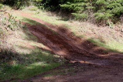 “It’s really evident on those tire tracks off to the side of the road,” Engler says gesturing at muddy grooves digging into a bank on an ungraveled spur road. “It’s like, one person does it and then a bunch of these people decide they want to do it. One person decides to drive up this little hump to see if they can make it up here and then a bunch of people do.”