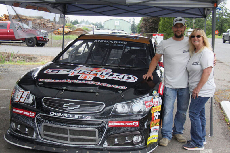 NASCAR veteran Andrew Tuttle made a stop in Sweet Home at The Woods Roadshouse Friday, June 3. Tuttle, of Idaho, here with his mom, Gladys Tuttle, competes part-time in the ARCA Menards Series West, driving the No. 39 Ford Fusion for his family-owned team Last Chance Racing. He’s driven NASCAR races for 10 years.