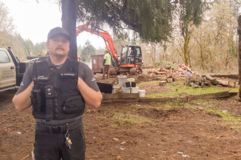 In the past two weeks, Dawson and a clean-up crew have cleared off nearly an acre full of, essentially, garbage at the end of Surrey Lane. Julie Wall, who lives on that small street off Ames Creek Road, said the occupant on the property had been adding to a mess that’s been a problem for decades.