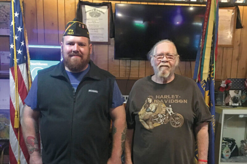Kurtis Begley, left, was sworn in as the new Sweet Home VFW commander and Dennis Lindsay, right, was sworn in as the new Sweet Home VFW Auxiliary president at the VFW’s monthly meeting on May 17.