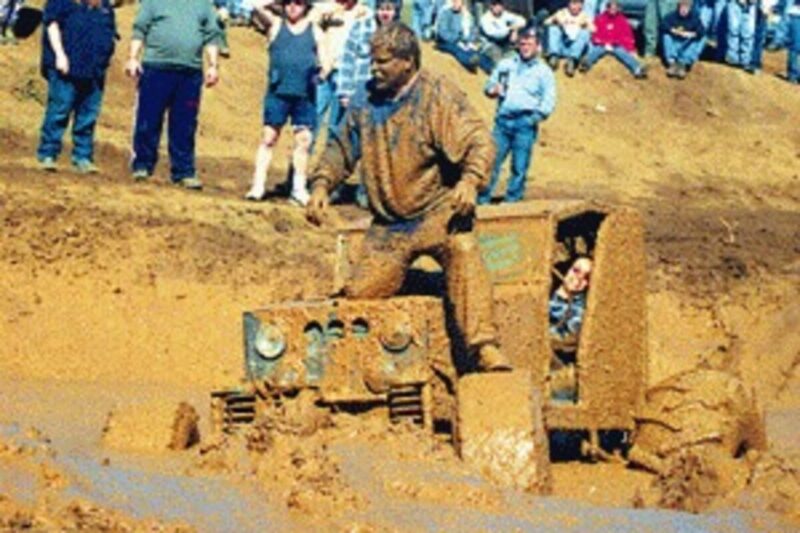 In the mud bogs, Randy and Gracie Bell of Yamhill were busy trying to get their vehicle out of the mud. Covered in mud, Randy was busy hooking it up to another truck for a lift out of the mud.