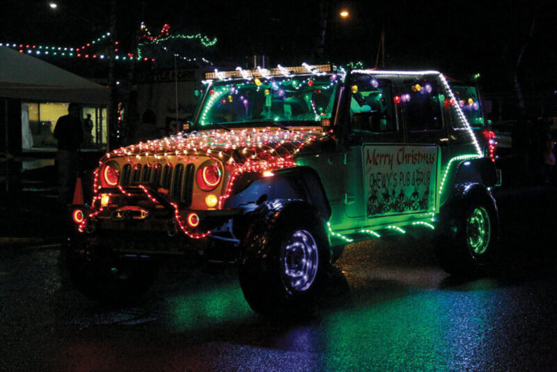 The Chewy’s Pub and Grill entry in Sweet Home’s Parade of Lights, on Dec. 11, has been voted the winner by spectators who logged in to choose their favorite parade entries. Second place went to the Sweet Home High School Girls Basketball Team (second photo), while third went to Timberline Cabinetry (third photo). Winners got custom plaques made by Magnum Metal Works.