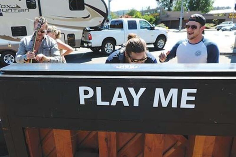 ‘Play Me’ piano on corner in front of Safeway draws a crowd