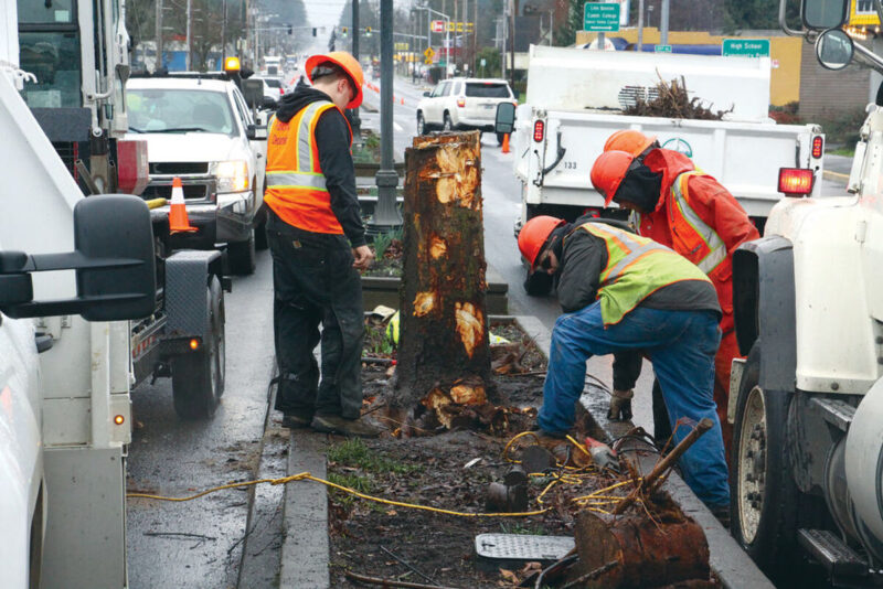 Sweet Home Public Works removed the remaining downtown Main Street median trees last week.