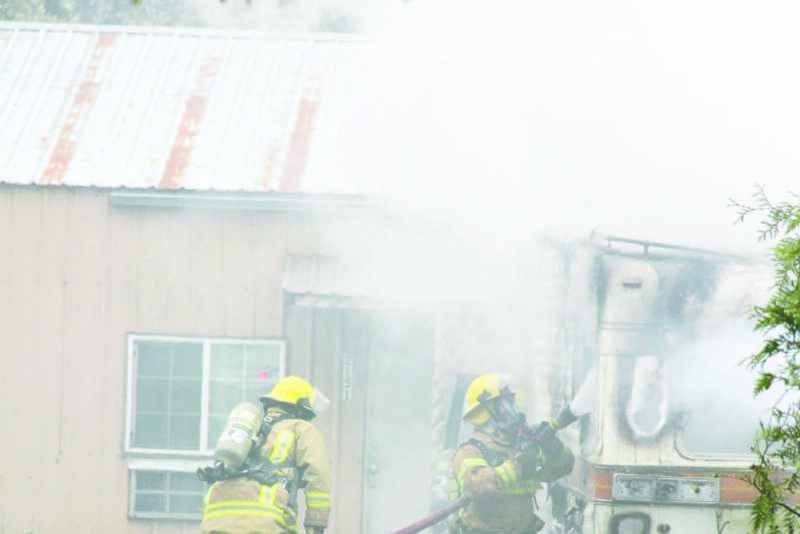 Firefighters extinguish a fire in a motor home parked at 2165 Ames Creek Drive. They responded to the fire at 2:26 p.m. on April 11. Battalion Chief Guy Smith said the fire originated in the oven area of the RV, but the cause remains under investigation. Investigators are attempting to contact the owner of the vehicle, Dawn Thompson. Responding to the fire were 10 personnel and two engines.