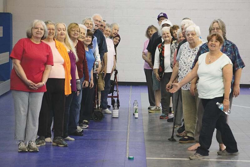 Members of the Center’s senior exercise class lined up part of their collection, the goal of which is to stretch the length of the gym – multiple times, if necessary, to raise funds to repair the roof of the Community Center.