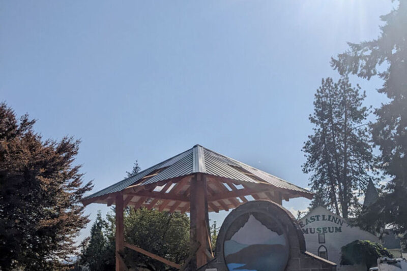 A new roof hangs over the loggers statues in front of the East Linn Museum at the intersection of highways 228 and 20, thanks to the efforts of Robin Miller, Mike Melcher and a team of volunteers. The chainsaw carving, initially placed in 2018, was rapidly deteriorating from the weather. In 2020, Melcher approached the Sweet Home City Council for help in acquiring approva from the Oregon Department of Transportation to erect a gazebo over the statue because ODOT owns the land upon which it sits. The roof was placed Saturday, Sept. 17, but another week or so will be necessary to complete the structure and reattach the two loggers.