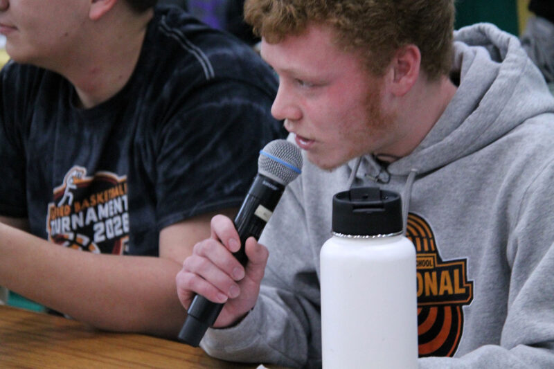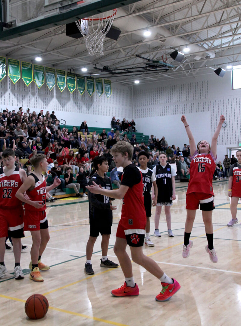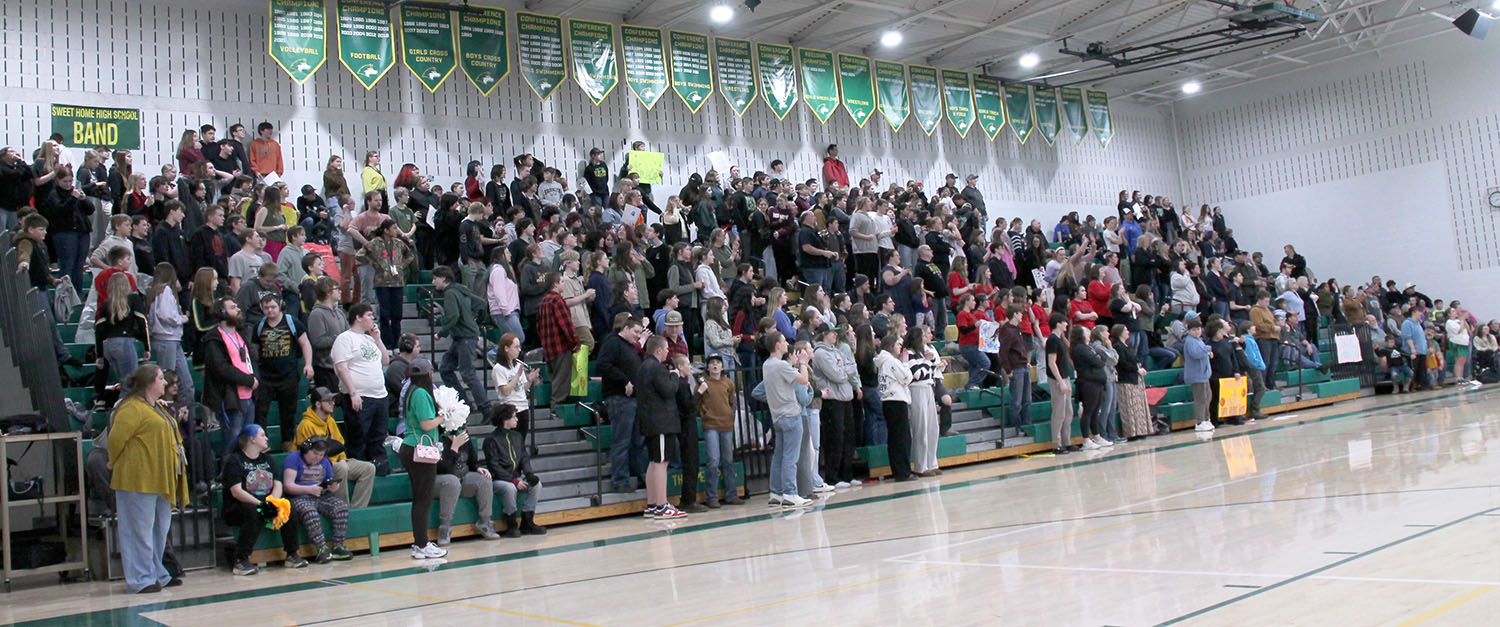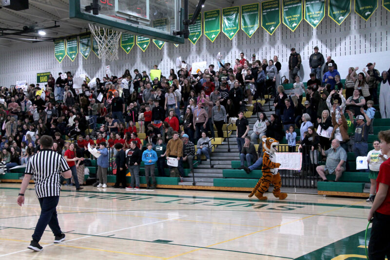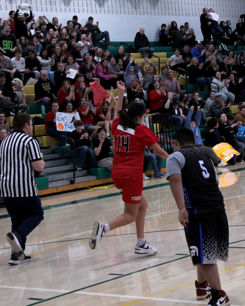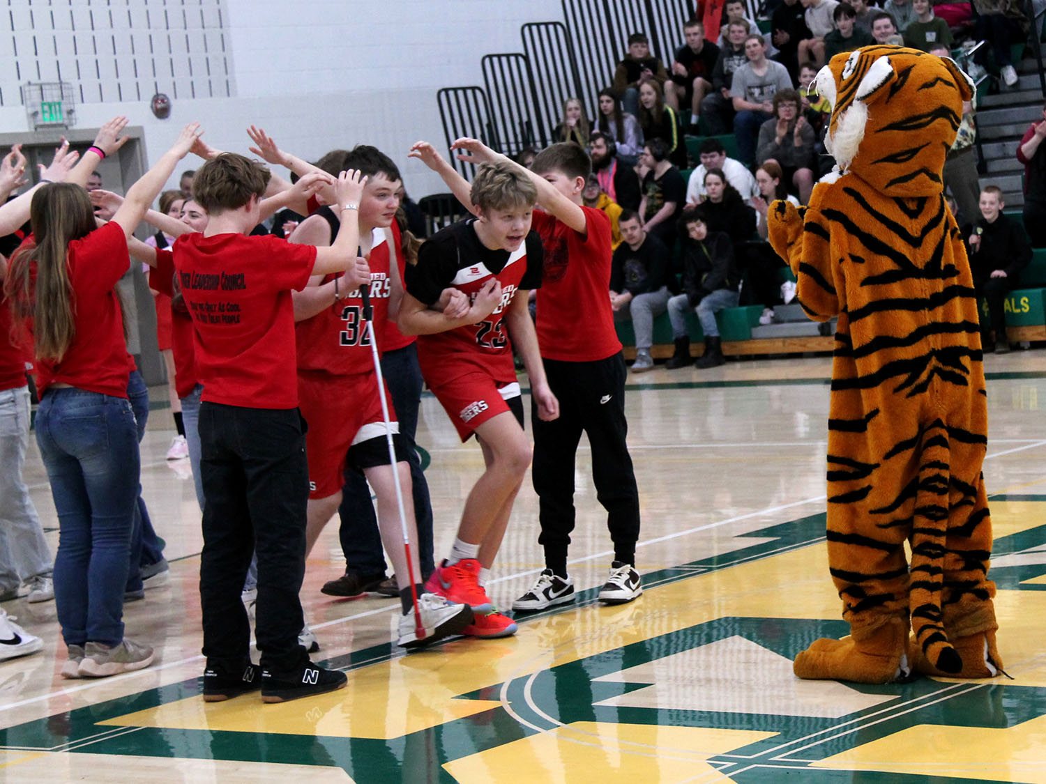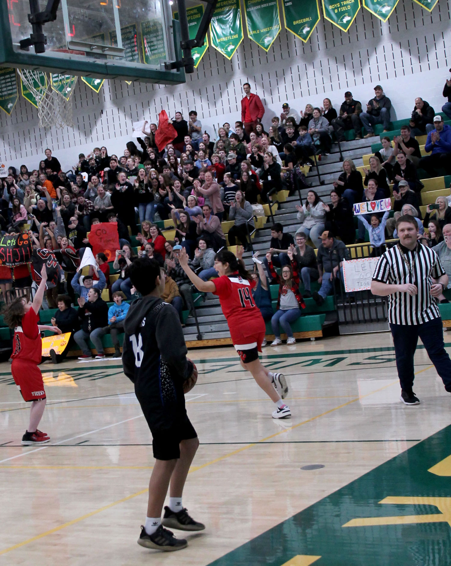 The game took place in front of an audience of the SHJH student body, who filled the south stands in the Main Gym at Sweet Home High School.