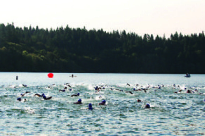 The overall winner in the Sprint Triathlon on Saturday, which had 197 finishers, was Theodore Casterline, 49, in 57:35. He covered the 500-meter swim in Foster Lake in 6:39, the 12-mile bike ride in 28:42 and the 5k (3.1-mile) run in 20:35. Adam Goulet, 30, was second in 59:08.