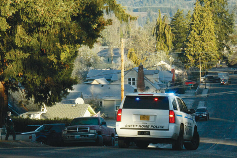 Police Sgt. Ryan Cummings (visible in the first photo) watches at the top of the hill on 12th Avenue at about 9 a.m. Saturday morning, Dec. 17, as a fellow officer negotiates, further down in the 700 block, with a 28-year-old man who had allegedly texted 911 dispatchers, stating that he was in danger and that someone in the house had a gun and was threatening to kill him.