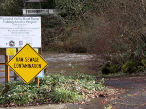 The flooding, combined with saturated ground conditions, resulted in the City of Sweet Home overflowing diluted raw sewage into Ames Creek, which flows into the South Santiam River.