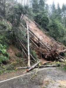 A landslide near Milepost 19 on Quartzville Road closed the road, at least through the weekend. Photo courtesy of Linn County