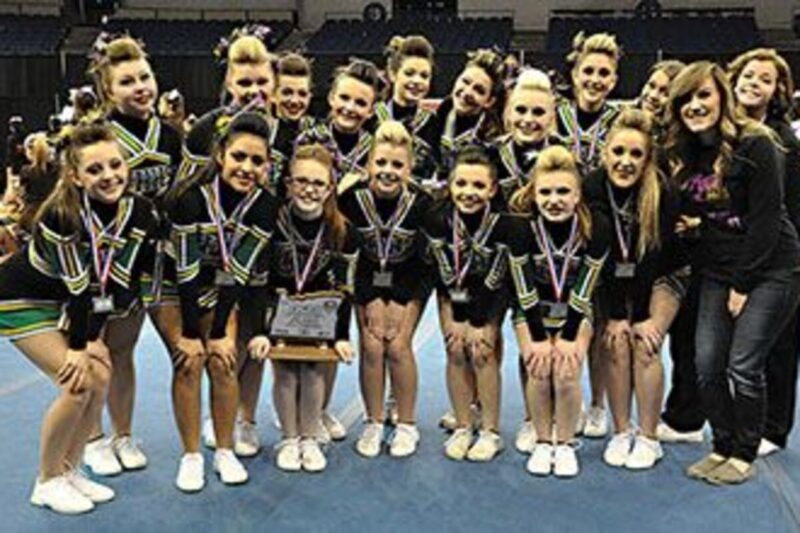 The Sweet Home High School varsity cheerleaders finished second, behind Klamath Union, among 13 teams at the state competition held Saturday at the Memorial Coliseum in Portland.