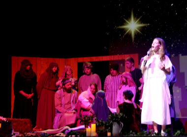 Above, Ember Ogden, right, sings “Born is the Light of the World,” one of the musical numbers during…