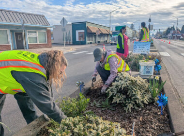 Awareness in Blue Volunteers joined the Sweet Home Police Department, placing blue pinwheels and signs along the median…